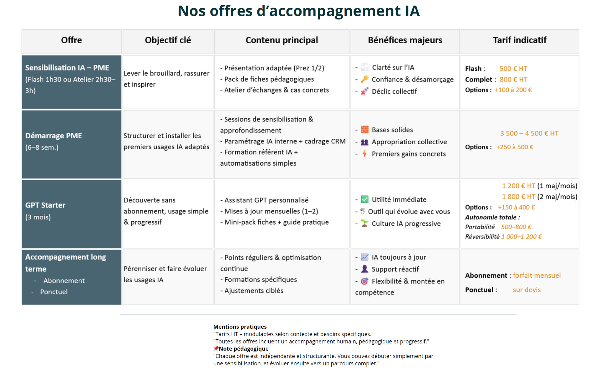 Chaque offre est indépendante et structurante : vous pouvez débuter simplement par une sensibilisation, et évoluer ensuite vers un parcours complet.